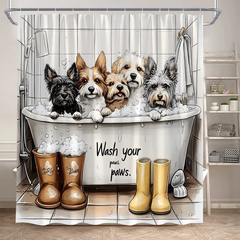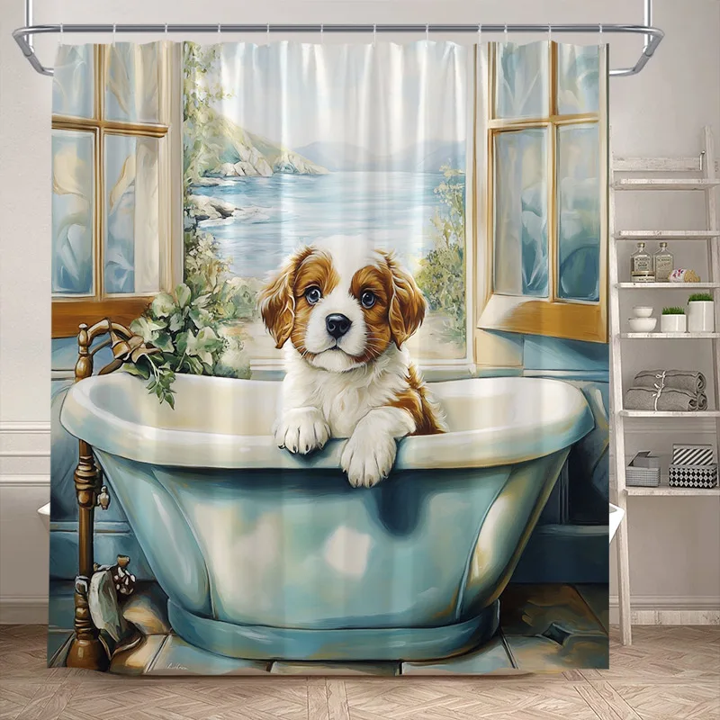 Funny Bathing Dogs Shower Curtains Cactus Floral Cute Pet Animals Kids Bath Curtain Polyester Home Bathroom Decor with Hooks